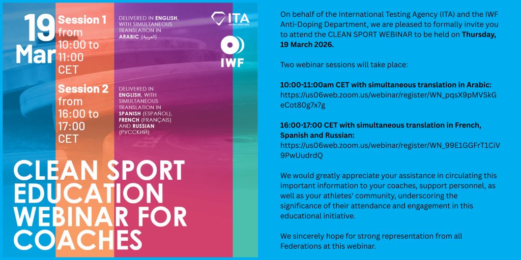 It is crucial for athletes to be proactive in the fight against doping within our sport—by staying informed, making responsible choices, and helping protect the integrity of weightlifting.